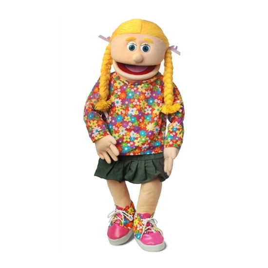 Our FULL/HALF BODY PRO PUPPETS XL are designed for professional use with large audiences and can be used with or without a stage. Puppet legs quickly detach and attach securely with industrial strength snaps. Since these puppets are extremely large, being able to detach the legs makes for easier use behind the stage. Puppets are 30" with legs attached and 16" with legs removed. Their heads, mouths, hands and bodies are all oversized so your audience way in the back can enjoy their movement and expression. You'll appreciate the top of the line quality and craftsmanship that goes into each puppet. With easy to operate mouths designed for comfort, quality fabrics, smooth lining and attention to every seam and detail, each adorable puppet character is made to last a lifetime.